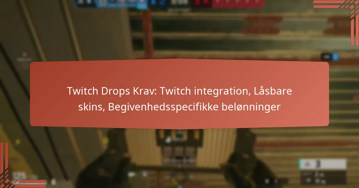 Event-specifikke belønninger for Twitch Drops er eksklusive in-game genstande, som spillere kan låse op ved at deltage i udpegede Twitch-events. Disse belønninger inkluderer ofte låsbare skins og andre tidsbegrænsede tilbud, der forbedrer fællesskabsengagementet og gameplayoplevelsen.